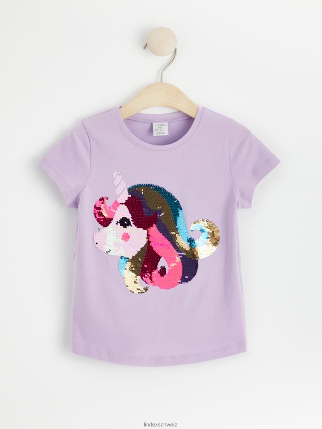 haut à manches courtes avec sequins réversibles lilas clair Lindex vêtements enfants D44L8F2837