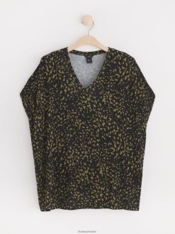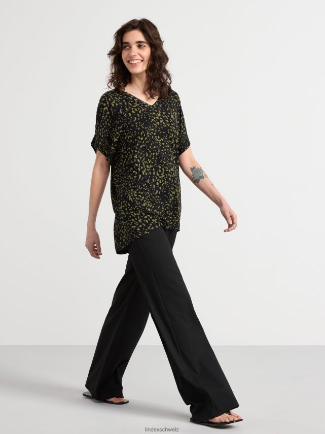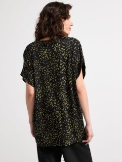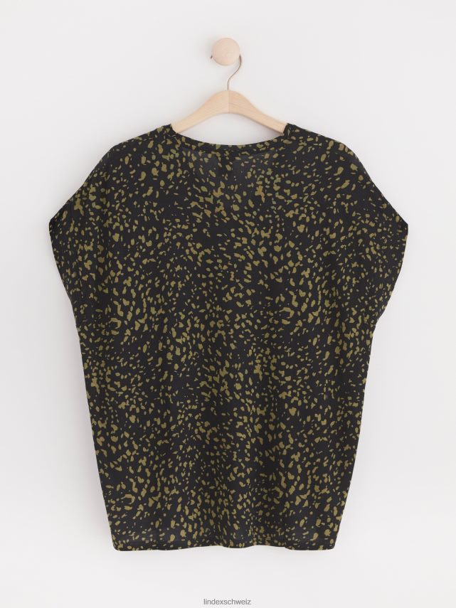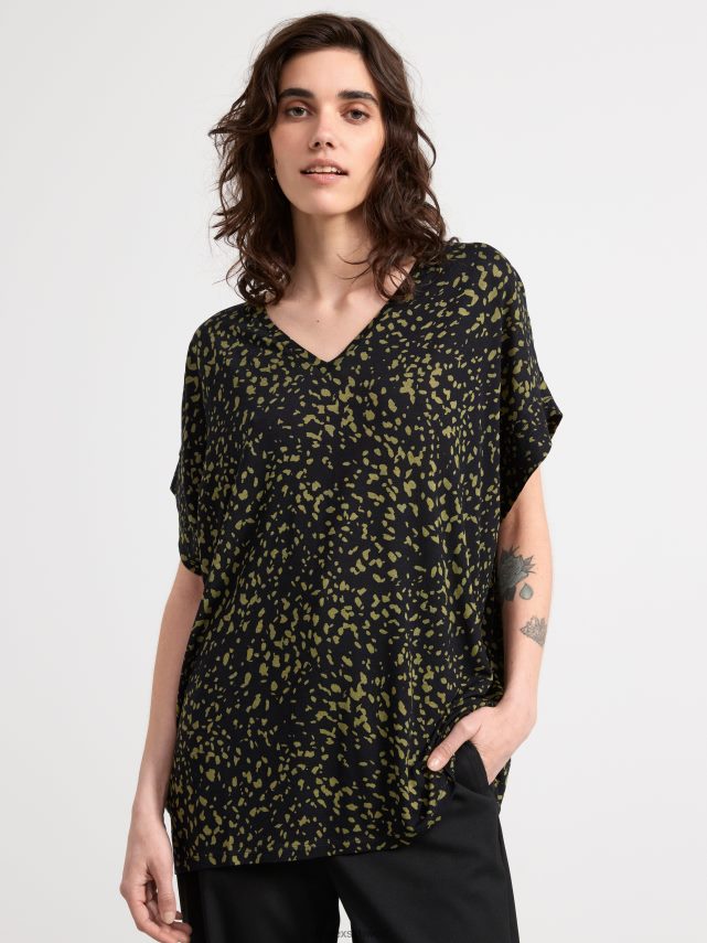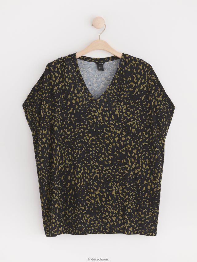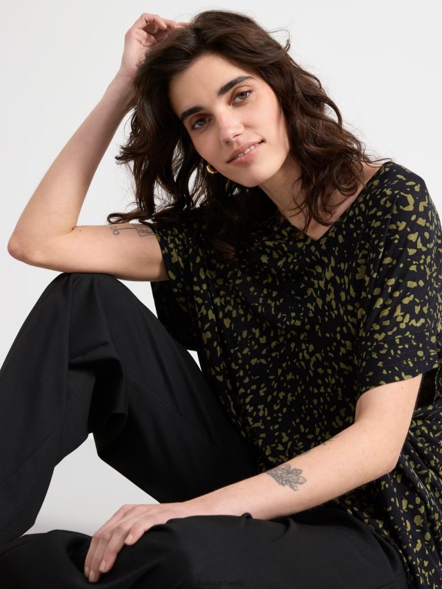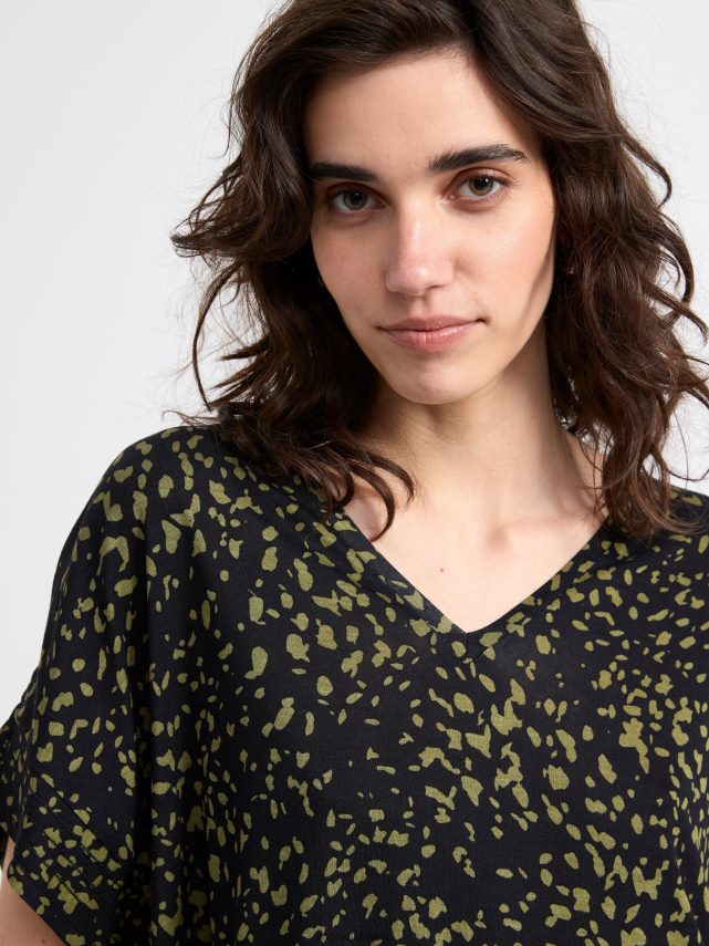 un haut en jersey doux à manches courtes avec un col en V et un imprimé intégral. matériel. cette pièce est basée une fois de plus sur sodra, une nouvelle matière première innovante en fibre de viscose, où des textiles recyclés sont combinés avec du bois issu de forêts gérées de manière responsable. Oncemore est un matériau de haute qualité et est produit avec un impact moindre sur l’environnement par rapport aux matières premières en fibre de viscose conventionnelles.