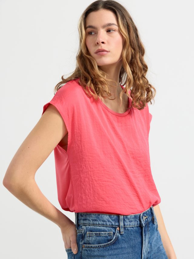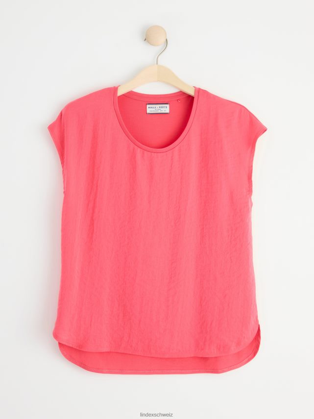 un haut en jersey élégant avec un satin tissé sur le devant. matériel. cette pièce est partiellement fabriquée en polyester recyclé. Lorsque l’on utilise du polyester recyclé, cela signifie que des matériaux qui ont déjà été produits, comme les bouteilles en PET, ont une autre chance. il est beaucoup plus économe en ressources que la production de nouveaux matériaux, ce qui le rend meilleur pour l’environnement et réduit l’impact climatique.