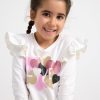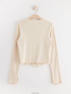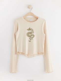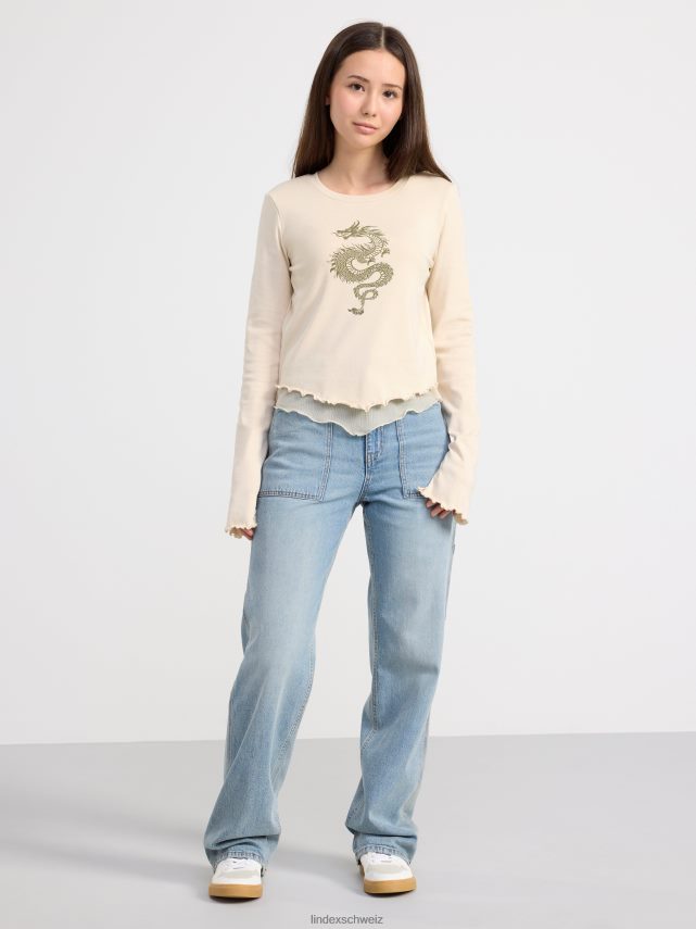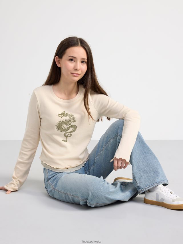 un haut doux à manches longues avec un imprimé sur le devant, des ourlets bouclés aux extrémités des manches et en bas, ainsi qu’un détail en maille au bas. matériel. c’est une pièce certifiée Gots. il est fabriqué à partir de coton biologique et chaque étape de la production a été certifiée de manière indépendante pour garantir qu’elle respecte les exigences sociales et environnementales de Gots (norme mondiale des textiles biologiques).