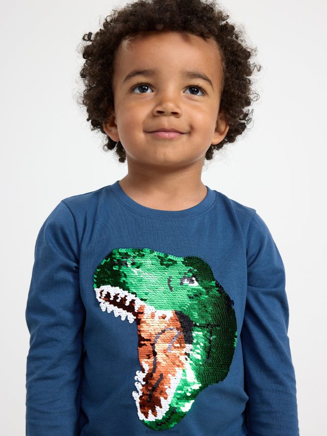 un haut confortable à manches longues en jersey de coton doux avec un dinosaure scintillant avec des paillettes réversibles sur le devant. matériel. cette pièce est partiellement réalisée en coton biologique. le coton biologique est cultivé sans produits chimiques toxiques ni graines de coton génétiquement modifiées. la culture préserve la biodiversité, les écosystèmes et les personnes en utilisant des processus naturels plutôt que des intrants artificiels.