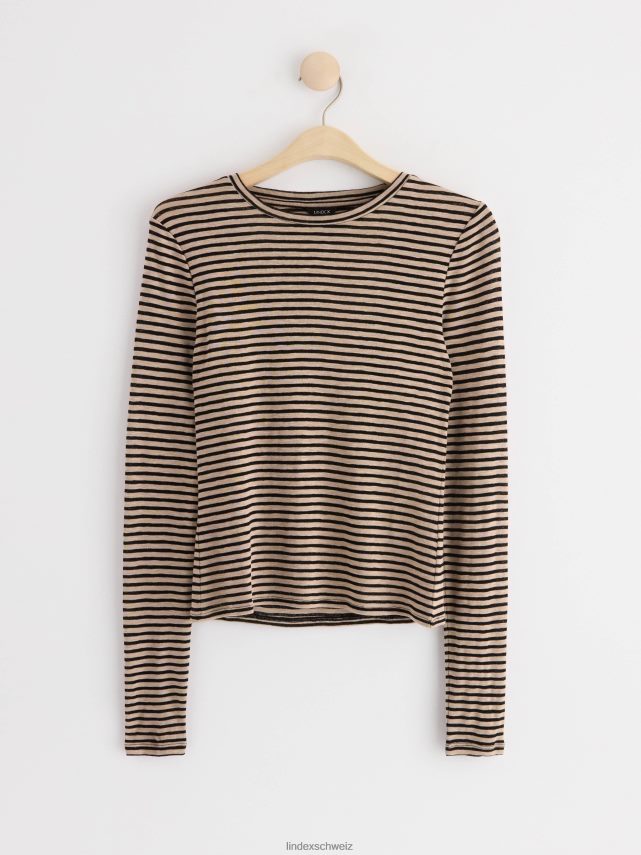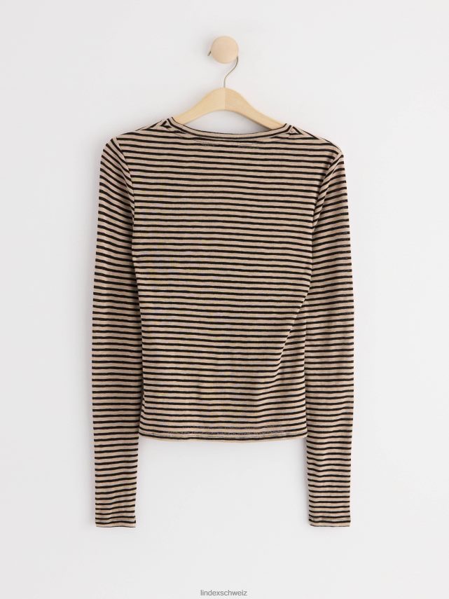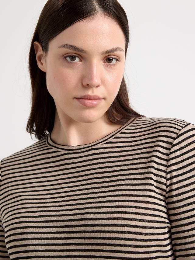 haut classique à manches longues avec encolure ronde et silhouette ajustée, fabriqué en tissu extensible.