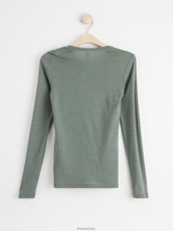 haut classique à manches longues avec encolure ronde et silhouette ajustée, fabriqué en tissu extensible.