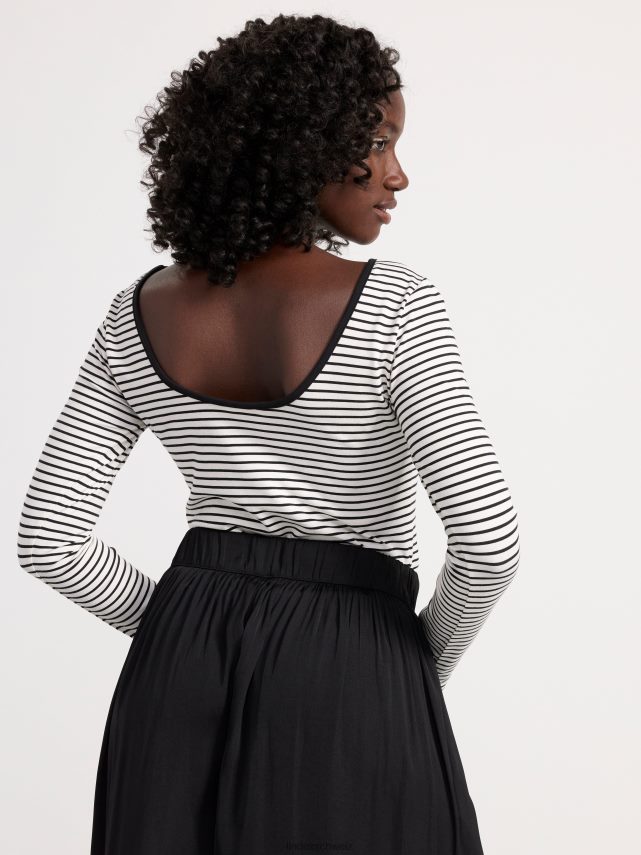 haut confortable à manches longues, silhouette ajustée et encolure dégagée dans le dos.