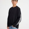 top en coton à manches longues, col rond et coupe droite.