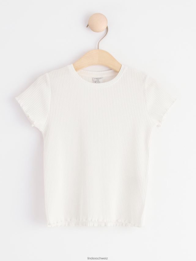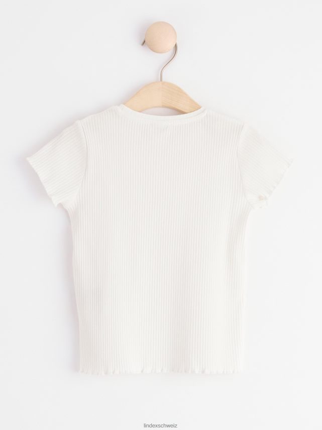 haut côtelé à manches courtes blanc légèrement poussiéreux Lindex vêtements enfants D44L8F2838