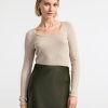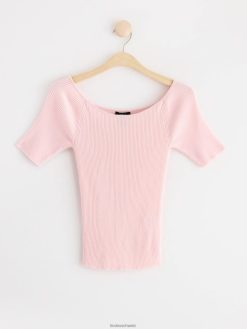 un haut côtelé à manches courtes doux et élégant avec un décolleté arrondi profond.