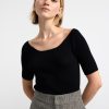 haut côtelé à manches longues confortable et élégant avec une bordure en dentelle à l’encolure.