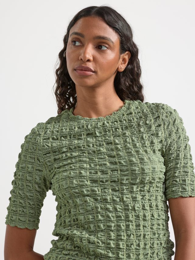 haut froissé kaki clair Lindex vêtements femmes D44L8F176