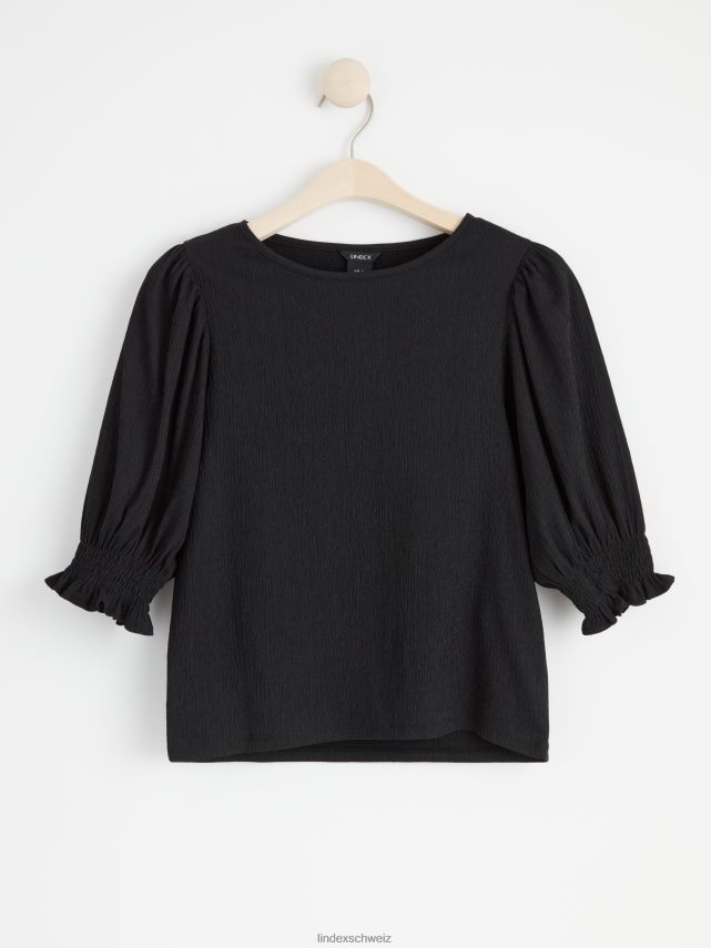 un haut élégant à manches courtes avec une surface texturée sur toute la surface.