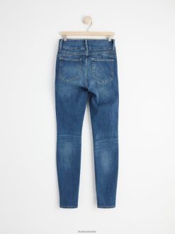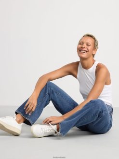 Jean taille haute en coton recyclé, délavage bleu clair, avec jambes droites extra longues, confectionné dans un denim de coton robuste. du déchet à la mode portable. 100 % du coton de ce produit est fabriqué à partir de matériaux recyclés. matériel. cette pièce est confectionnée en coton recyclé. en utilisant du coton recyclé, cela signifie que le coton qui a déjà été cultivé et qui aurait été gaspillé a une autre chance. c’est beaucoup plus économe en ressources et en eau par rapport à la culture de nouveau coton.