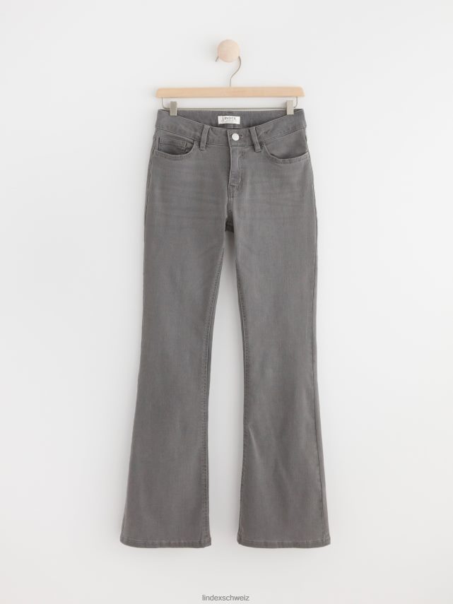 Jean tissé confortable en coton mélangé avec une taille classique réglable et une jambe évasée. taille standard.