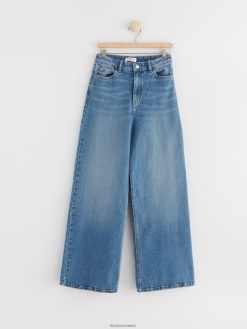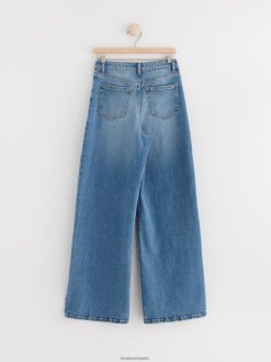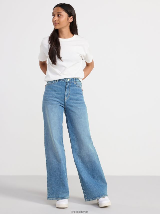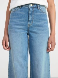 jean tissé confortable en coton recyclé avec une taille haute et une jambe extra large. taille haute.