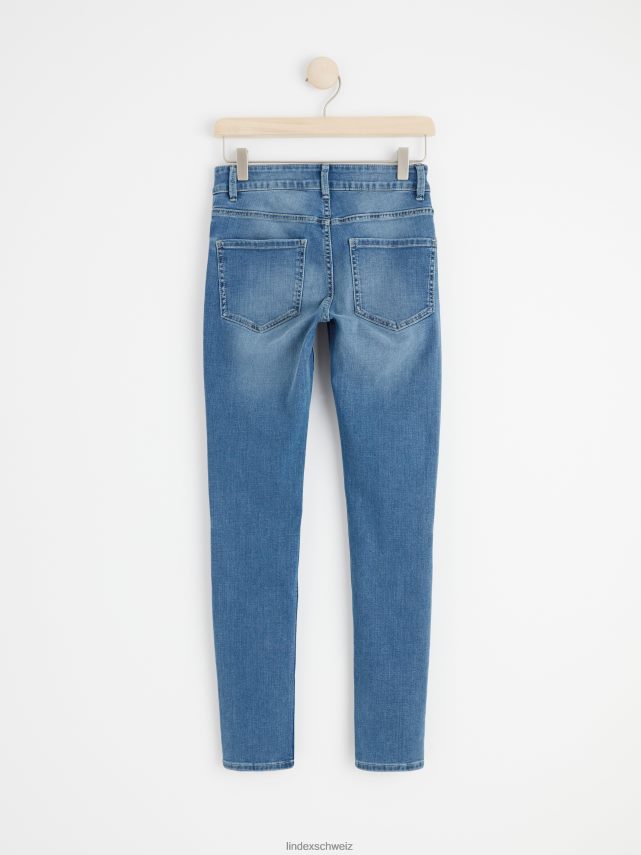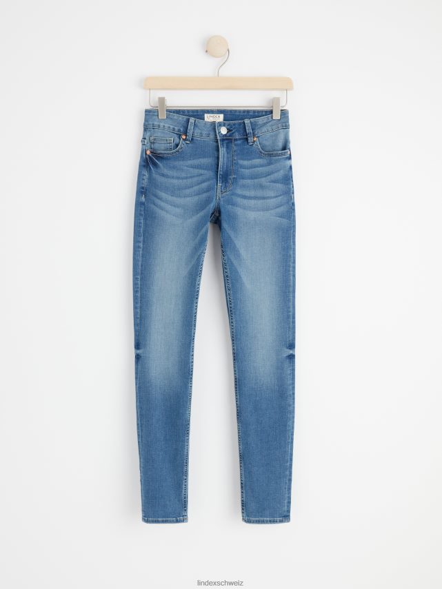édition en ligne. Jean coupe slim extra doux et extensible dans notre tova coupe denim avec taille standard et délavage bleu moyen classique.