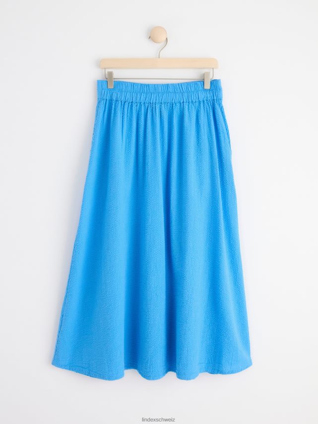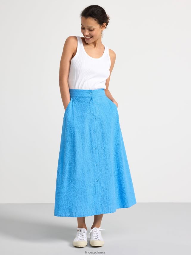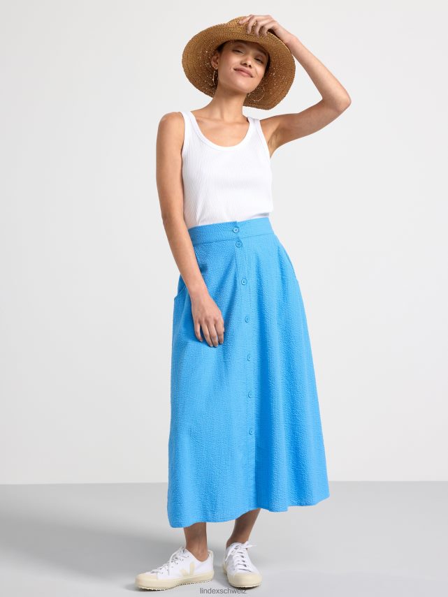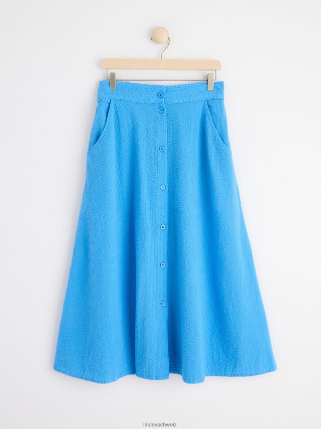 jupe mi-longue avec une coupe évasée et des boutons sur le devant, en coton seersucker.