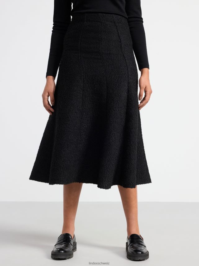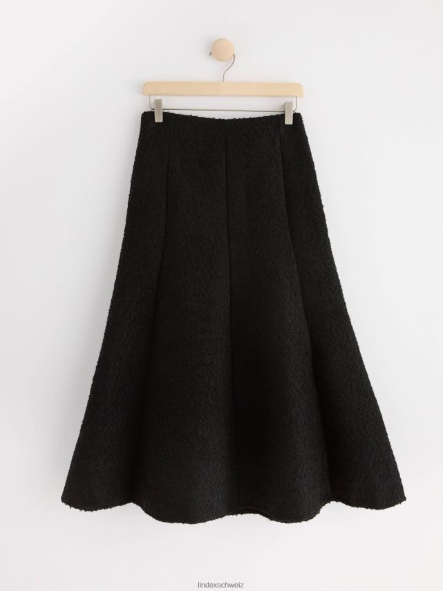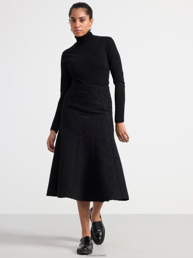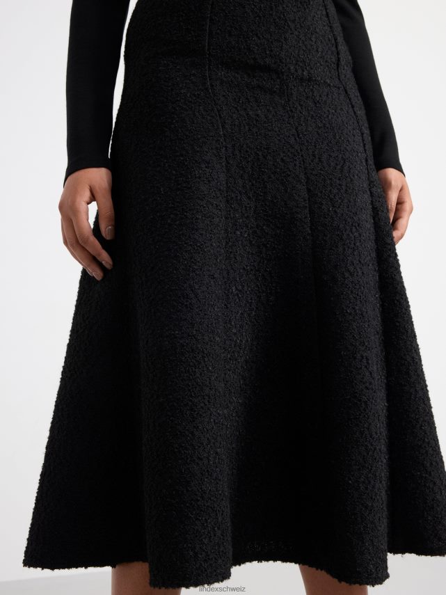 une jupe midi élégante et ajustée en matière bouclée douce et une belle silhouette évasée.