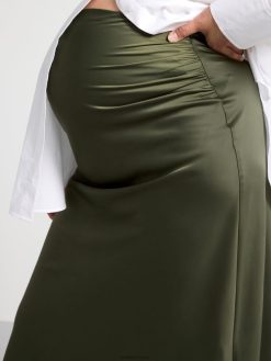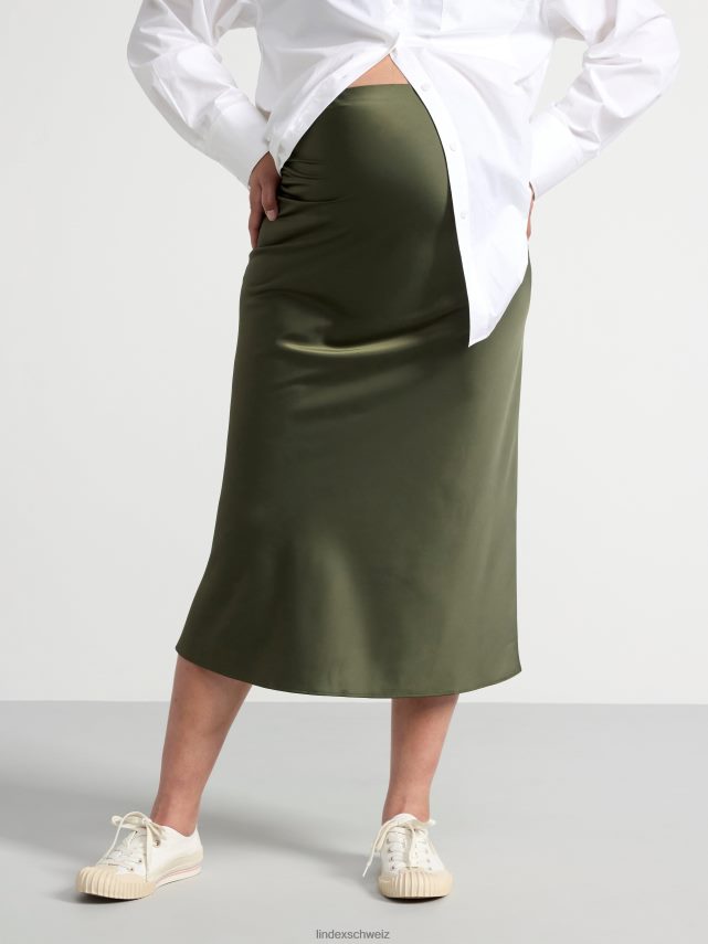 jupe midi élégante en satin avec de la place pour un ventre qui grossit.