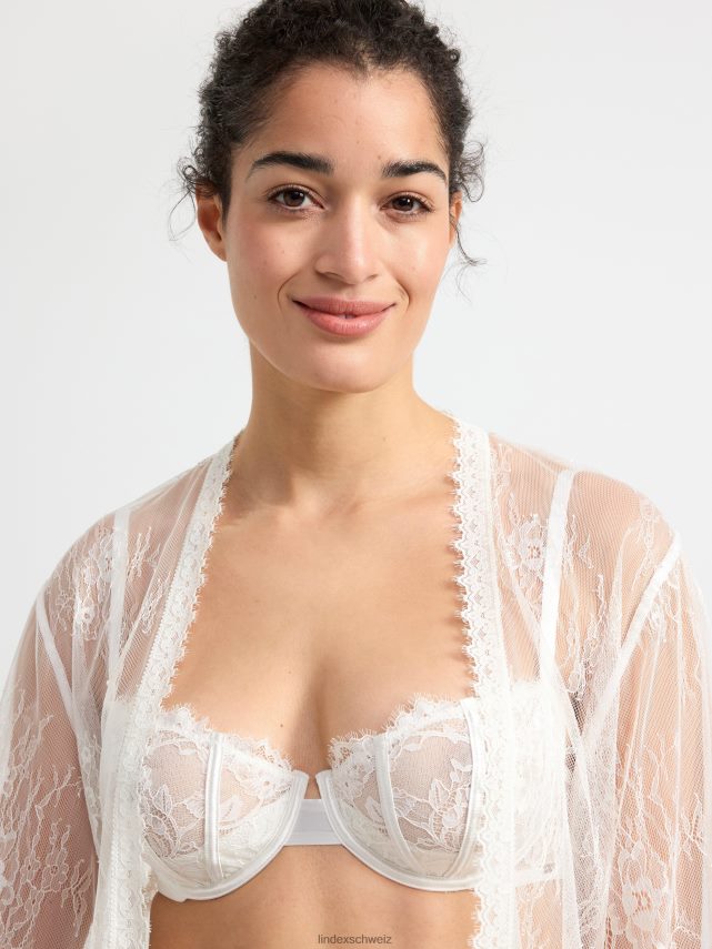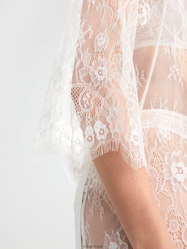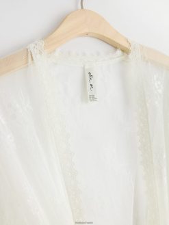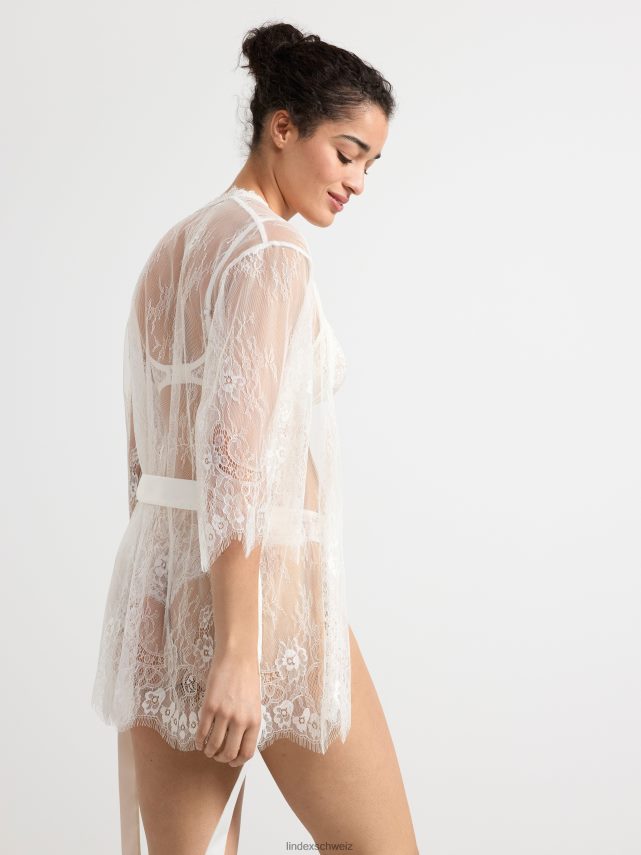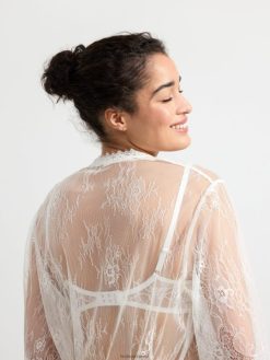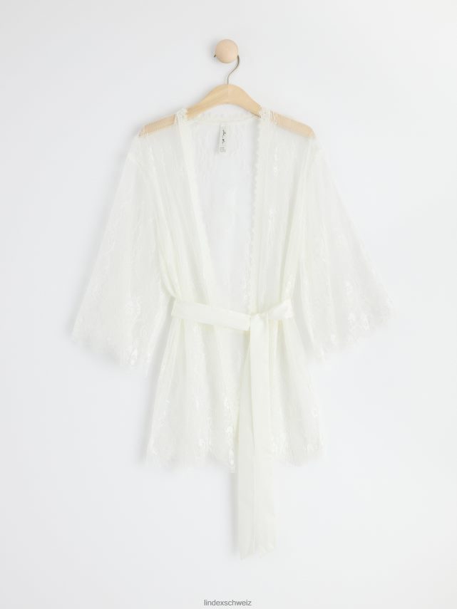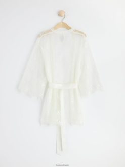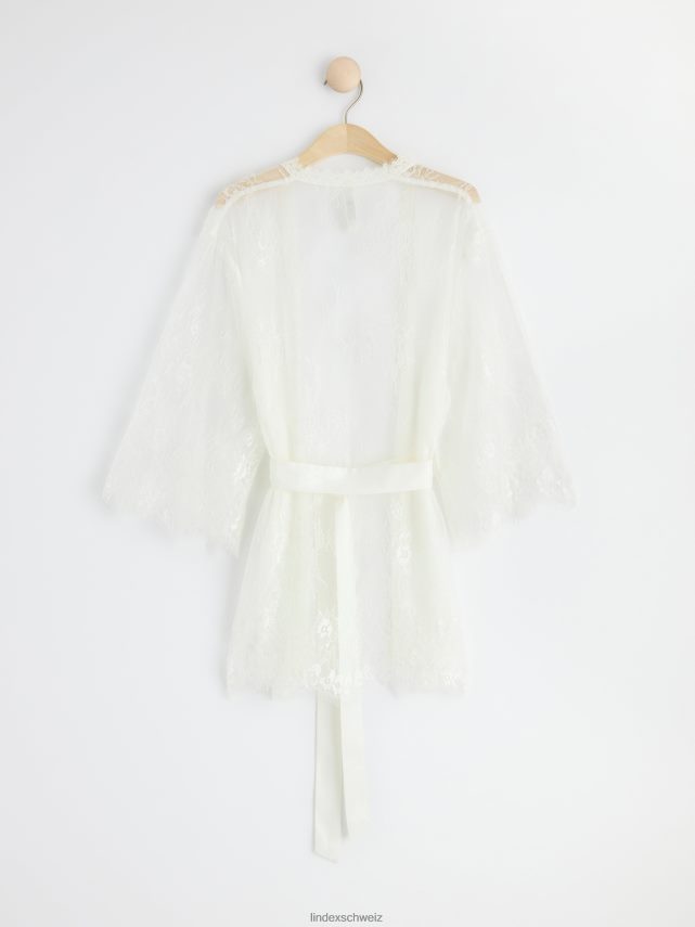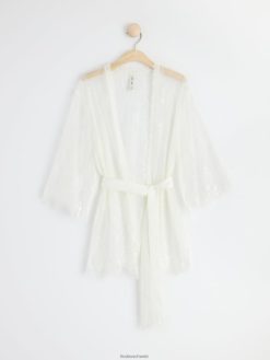 kimono en dentelle transparente avec ceinture en satin amovible à la taille.