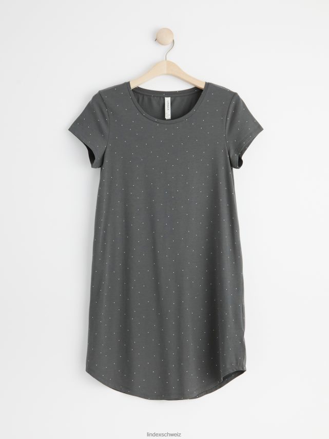 robe de nuit douce et confortable avec une encolure ronde, des manches courtes et un imprimé à pois sur l’ensemble. matériel. c’est une pièce certifiée Gots. il est fabriqué à partir de coton biologique et chaque étape de la production a été certifiée de manière indépendante pour garantir qu’elle respecte les exigences sociales et environnementales de Gots (norme mondiale des textiles biologiques).
