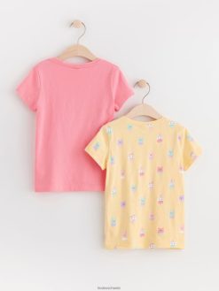 deux hauts à manches courtes en jersey de coton doux avec une encolure ronde. matériel. c’est une pièce certifiée Gots. il est fabriqué à partir de coton biologique et chaque étape de la production a été certifiée de manière indépendante pour garantir qu’elle respecte les exigences sociales et environnementales de Gots (norme mondiale des textiles biologiques).