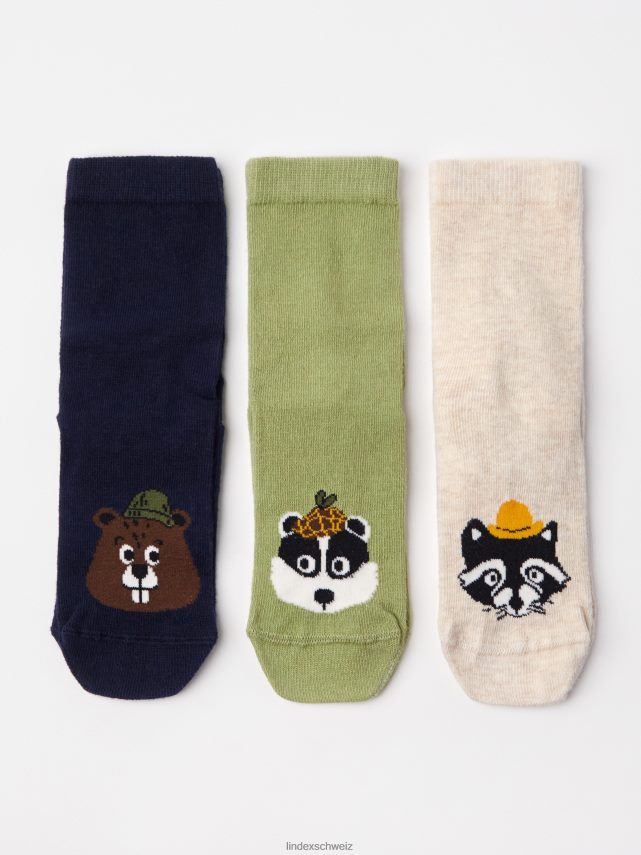 trois paires de chaussettes de différentes couleurs, avec antidérapant et un joli motif animal sur le devant.