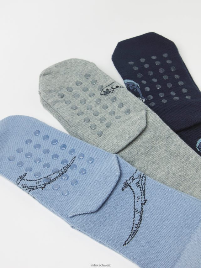 Lot de 3 chaussettes avec dinosaures et antidérapantes C’est un bleu poussiéreux Lindex accessoires enfants D44L8F3658