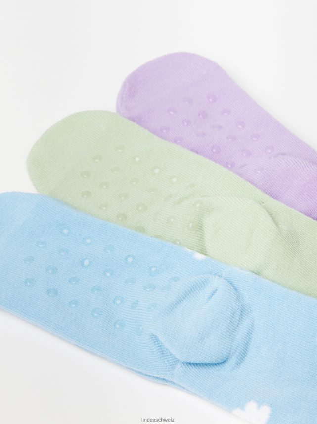 Lot de 3 chaussettes avec oiseaux et antidérapantes bleu clair Lindex accessoires enfants D44L8F3634