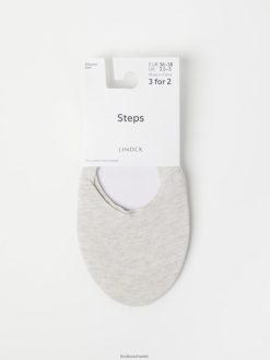 trois chaussettes roses, grises et blanches confectionnées en mélange de coton biologique avec de longs revers côtelés pliables. Les tailles 19/21 et plus sont livrées avec antidérapant.