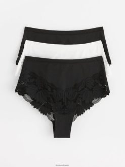 trois slips brésiliens taille haute en coton doux avec détails en dentelle et en résille. matériel. c’est une pièce certifiée Gots. il est fabriqué à partir de coton biologique et chaque étape de la production a été certifiée de manière indépendante pour garantir qu’elle respecte les exigences sociales et environnementales de Gots (norme mondiale des textiles biologiques).