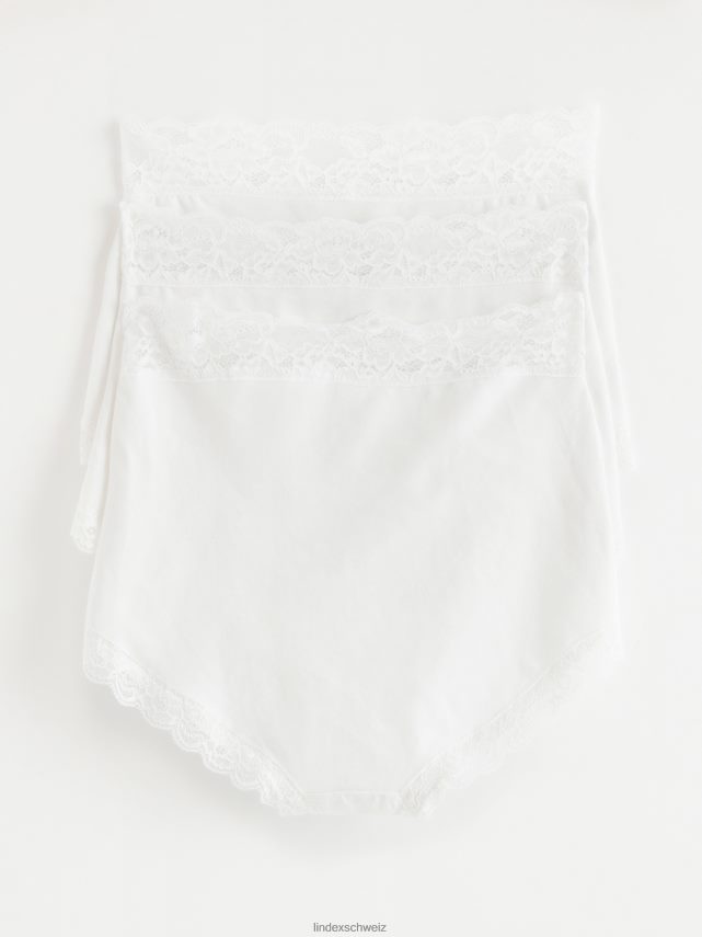édition en ligne. trois culottes en coton doux et confortables dans un style classique avec une taille haute et une bordure en dentelle. matériel. c’est une pièce certifiée Gots. il est fabriqué à partir de coton biologique et chaque étape de la production a été certifiée de manière indépendante pour garantir qu’elle respecte les exigences sociales et environnementales de Gots (norme mondiale des textiles biologiques).