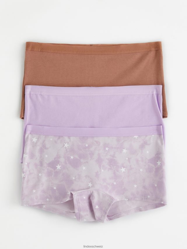 édition en ligne. trois slips doux et confortables. deux de couleur unie et un avec un imprimé étoiles intégral. matériel. c’est une pièce certifiée Gots. il est fabriqué à partir de coton biologique et chaque étape de la production a été certifiée de manière indépendante pour garantir qu’elle respecte les exigences sociales et environnementales de Gots (norme mondiale des textiles biologiques).