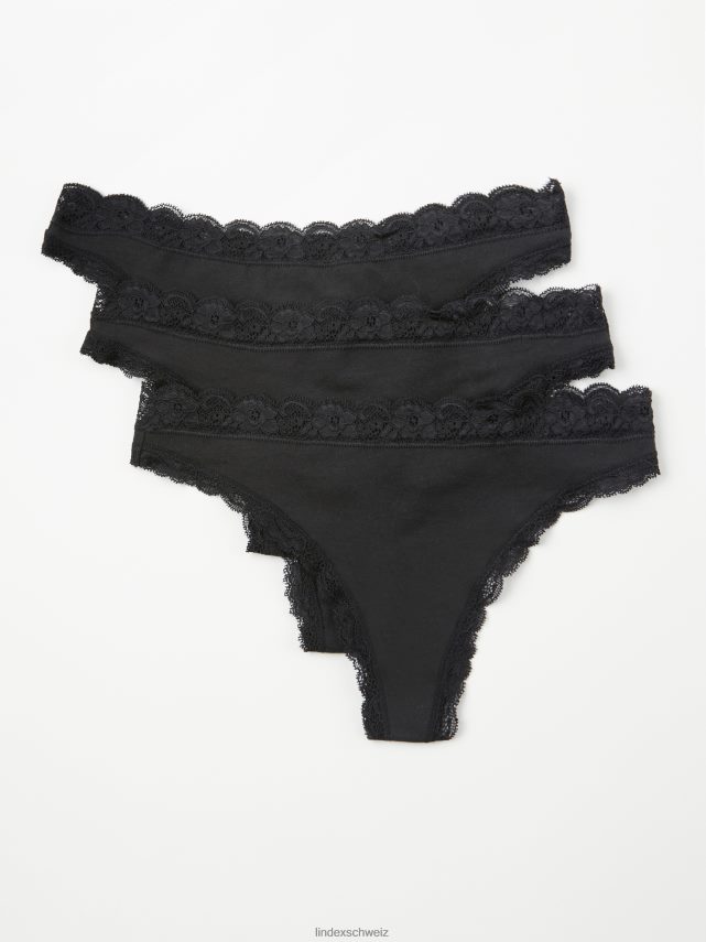 Lot de 3 strings réguliers noir Lindex vêtements femmes D44L8F2062