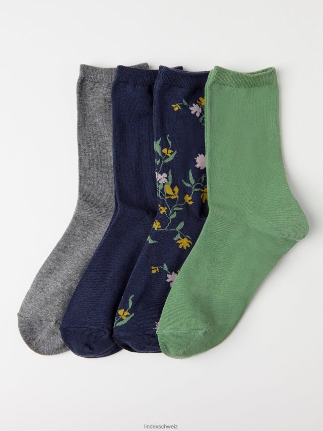 Lot de 4 chaussettes bleu poussiéreux foncé Lindex vêtements femmes D44L8F2211