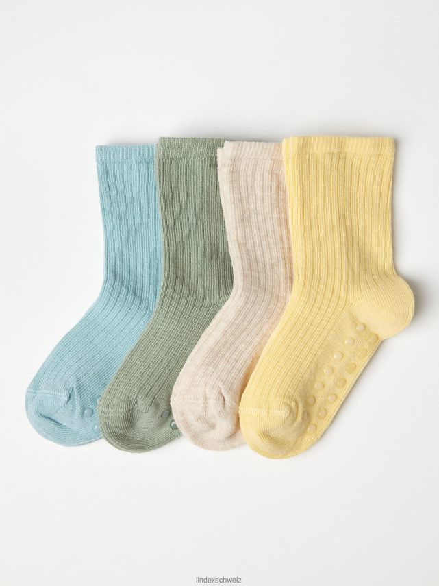 Lot de 4 chaussettes côtelées jaune légèrement poussiéreux Lindex accessoires bébé D44L8F4156