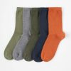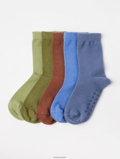 chaussettes douces de cinq couleurs différentes, toutes fabriquées à partir d’un mélange de coton biologique.
