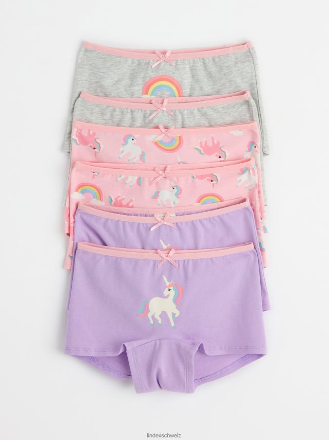 édition en ligne. six slips doux et confortables, tous avec des imprimés différents, une taille élastique et un nœud en satin sur le devant. matériel. c’est une pièce certifiée Gots. il est fabriqué à partir de coton biologique et chaque étape de la production a été certifiée de manière indépendante pour garantir qu’elle respecte les exigences sociales et environnementales de Gots (norme mondiale des textiles biologiques).