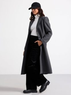 manteau intemporel en laine mélangée avec fines épaulettes, boutons sur le devant et poches latérales ouvertes.