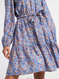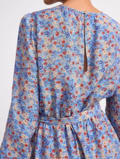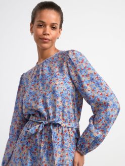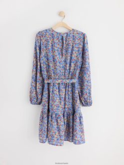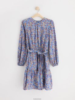 mini-robe à manches longues avec des fleurs bleu clair Lindex vêtements femmes D44L8F33