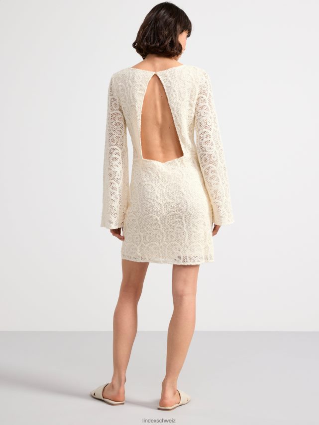 une jolie mini-robe de coupe slim et avec des manches longues légèrement évasées. la robe est dotée d’un magnifique motif de dentelle sur toute la surface ainsi que d’une découpe dans le dos.