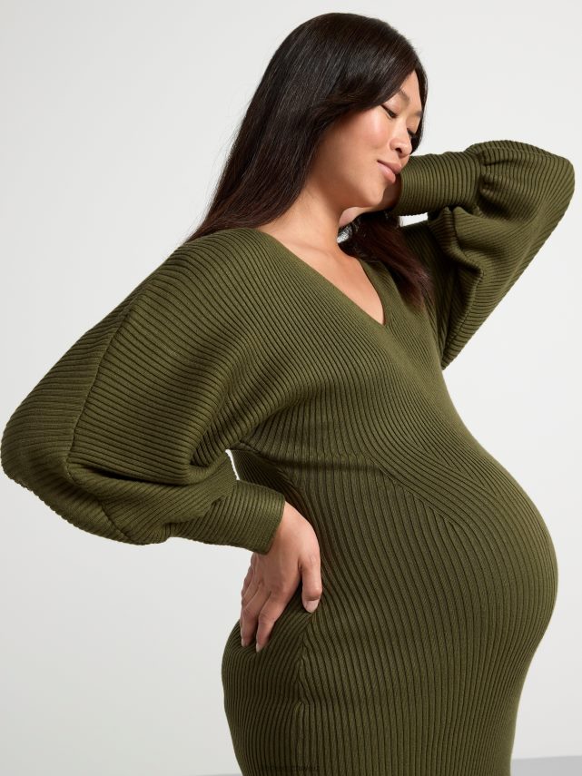 robe en tricot côtelé ultra douce avec de la place pour un ventre en pleine croissance. est doté de manches bouffantes et d’un col en V.