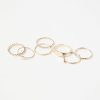 Lot de sept bagues en métal de différents modèles, en métal doré ou argenté.