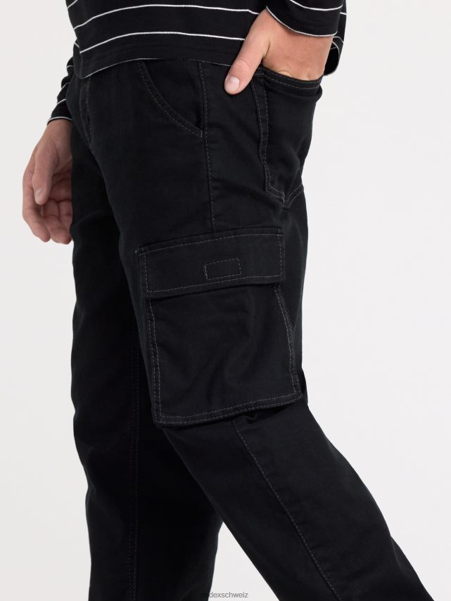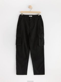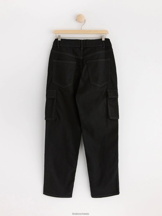 Pantalon cargo tissé avec jambes larges fuselées, taille classique réglable, poches sur les jambes et poches arrière.