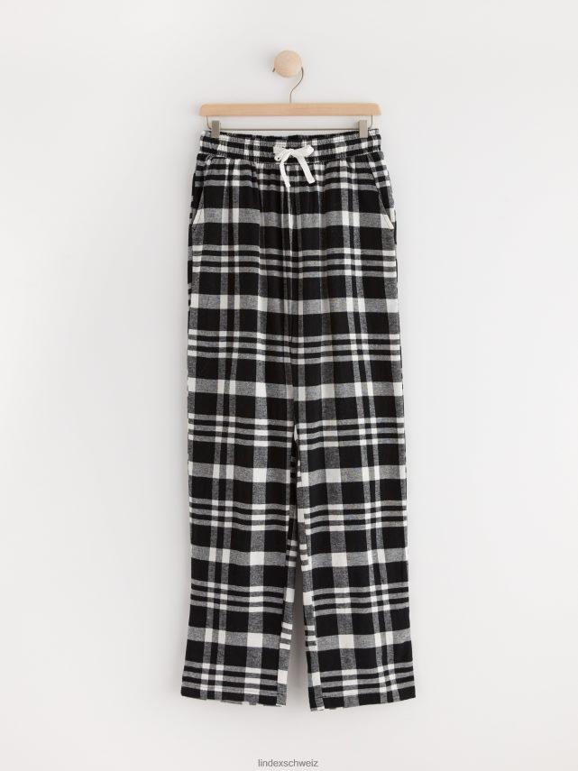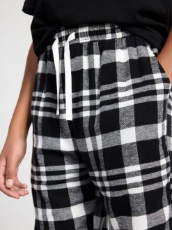 pantalon de pyjama douillet en flanelle de coton recyclé avec cordon de serrage à la taille et motif à carreaux.