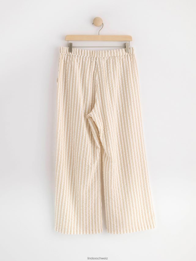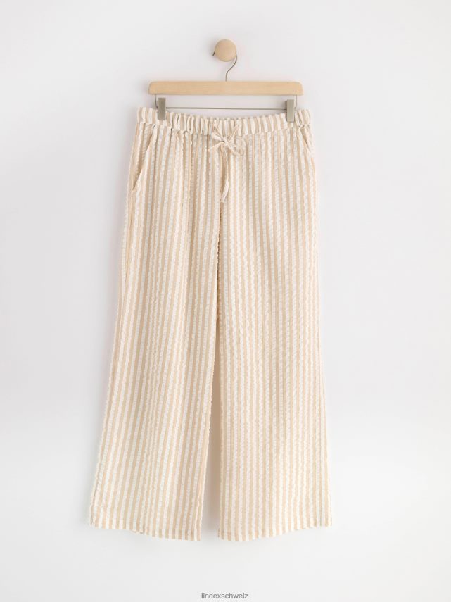 Pantalon de pyjama confortable en coton recyclé en seersucker doux. est livré avec une taille élastique avec cordon de serrage et poches latérales. matériel. c’est une pièce certifiée Gots. il est fabriqué à partir de coton biologique et chaque étape de la production a été certifiée de manière indépendante pour garantir qu’elle respecte les exigences sociales et environnementales de gots (norme mondiale des textiles biologiques).