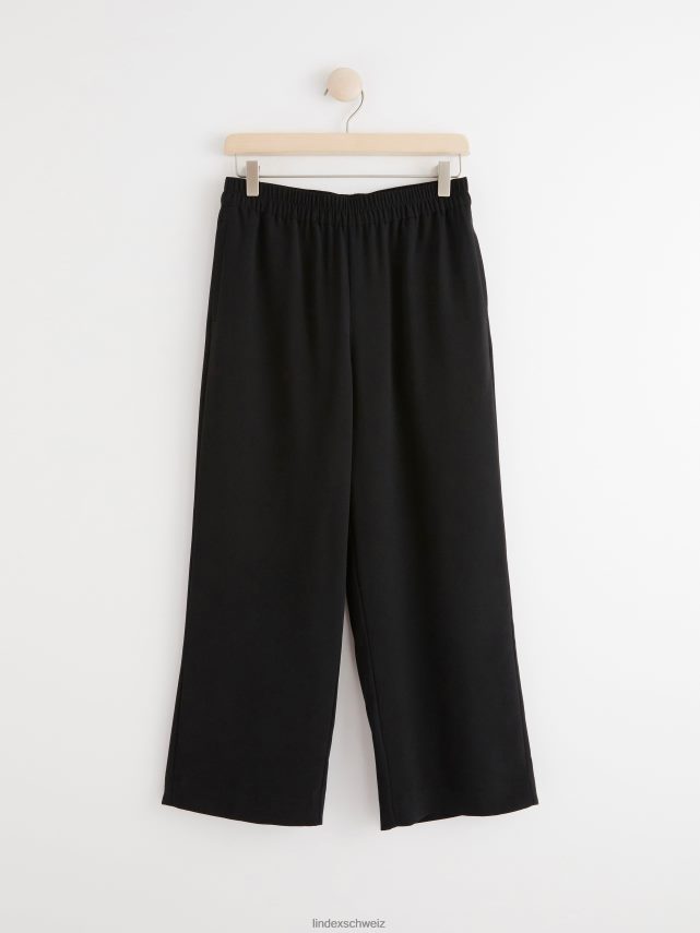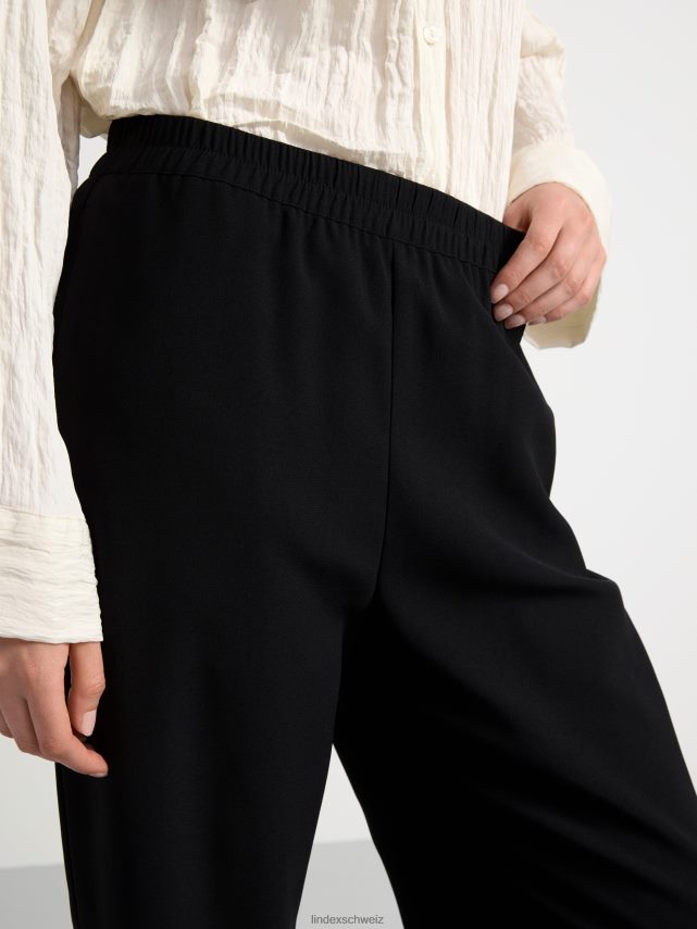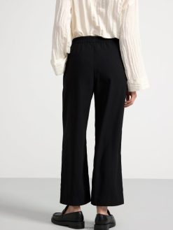 ce pantalon noir dans notre coupe bella est votre choix idéal si vous recherchez un pantalon confortable et facile à assortir. ils sont dotés d’une jambe raccourcie, d’une taille élastiquée et d’une silhouette droite. fabriqué à partir de 51 % de polyester recyclé.