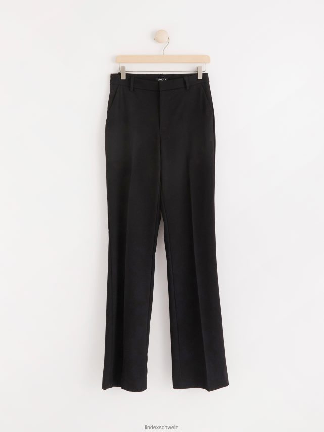 Pantalon dans notre coupe Fiona avec taille normale et jambe évasée extra longue avec plis pour un look décontracté mais bien habillé.