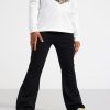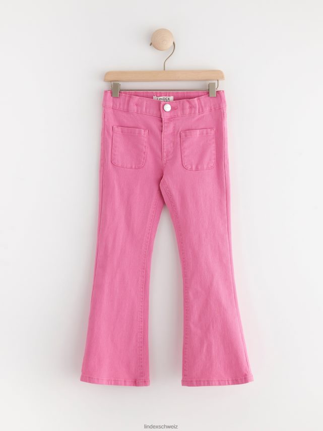 Pantalon en coton stretch, taille normale et jambe évasée.