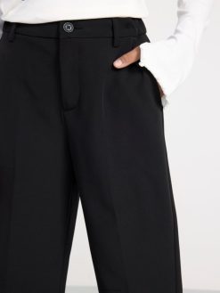 pantalon de costume élégant avec une jambe large et une taille haute. le pantalon est doté de poches sur le devant et de fausses poches à l’arrière ainsi que d’une braguette zippée et d’une fermeture boutonnée. durabilité. cette pièce est partiellement fabriquée en polyester recyclé. Lorsque l’on utilise du polyester recyclé, cela signifie que des matériaux qui ont déjà été produits, comme les bouteilles en PET, ont une autre chance. il est beaucoup plus économe en ressources que la production de nouveaux matériaux, ce qui le rend meilleur pour l’environnement et réduit l’impact climatique.