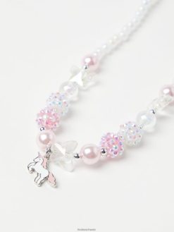 un joli ensemble composé d’un collier et d’un bracelet élastiques avec des licornes et des perles en plastique.
