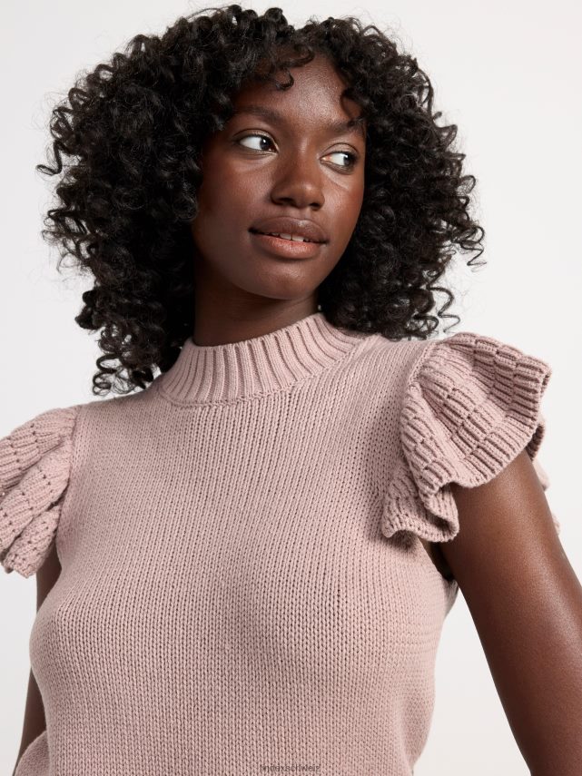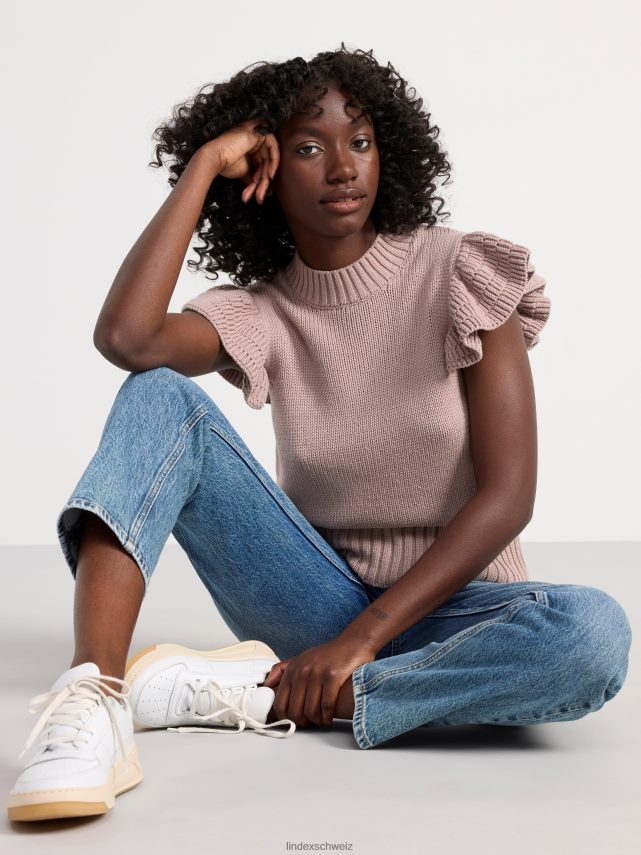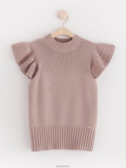 pull en maille à manches volantées lilas légèrement poussiéreux Lindex vêtements femmes D44L8F200